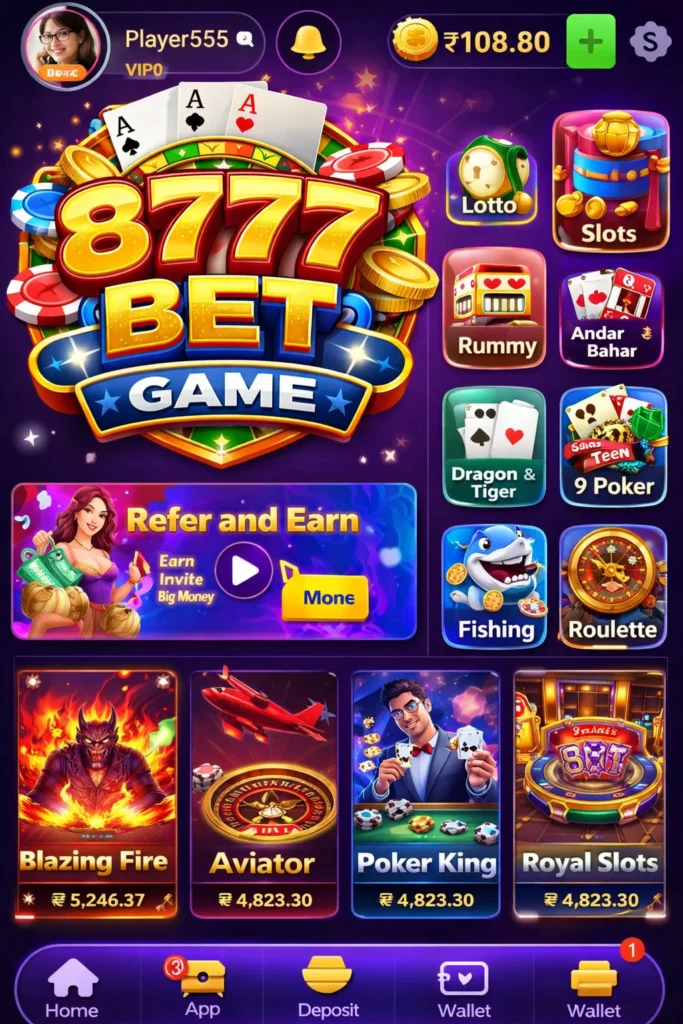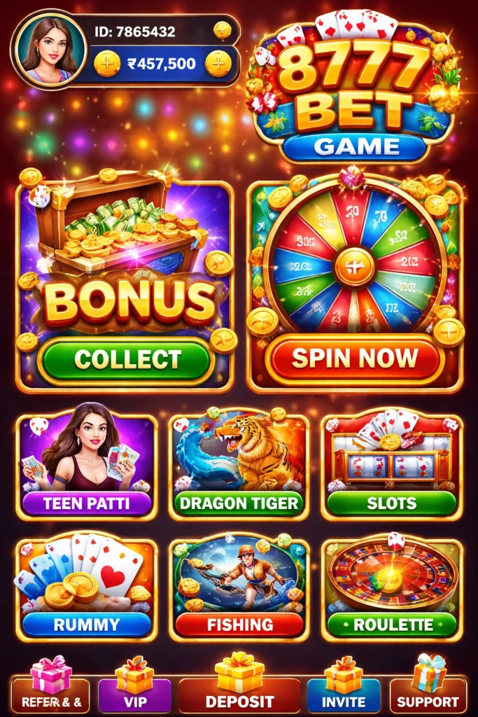 8777Bet game is a modern mobile platform designed for fun and earning opportunities. Moreover, it blends simple gameplay with real cash rewards for everyday users. In addition, players can explore exciting options like slots, cards, and lottery-style challenges. Therefore, it is ideal for beginners who want an easy and smooth earning game experience. Overall, this real money app delivers entertainment, rewards, and convenience in one place.